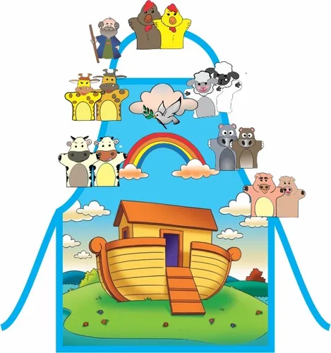 Avental de Contação de Histórias, confeccionado em feltro, impresso em policromia, com personagens que se fixam através de velcro, contendo 13 personagens.